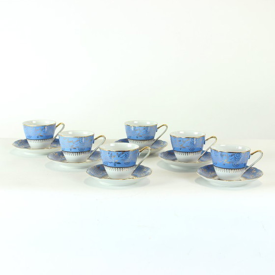 Set da tè vintage in porcellana blu e oro di Stará Role, Cecoslovacchia, anni '50