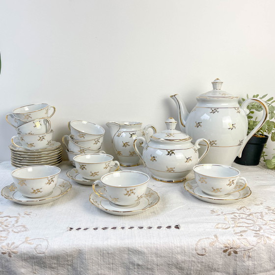 Set da tè/caffè vintage in porcellana bianca con finiture dorate FD Chauvigny