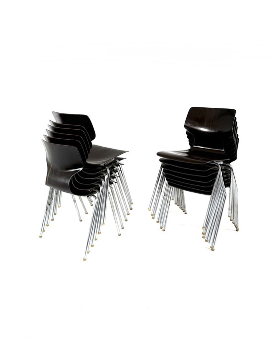 Lotto di 13 sedie impilabili vintage Pagholz, disegnate dall'icona del design tedesco Elmar Flötotto, anni '70.