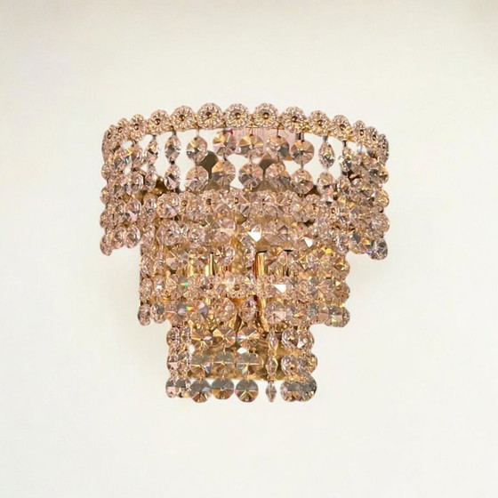 Set di 2 applique in cristallo di metà secolo, lampada Beethoven anni '50-'60, realizzate in ottone/Swarovski di alta qu