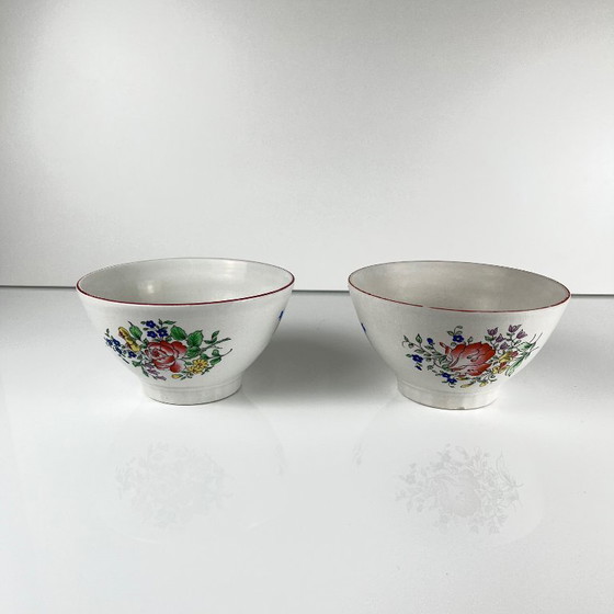 Oggetti antichi, conservano le tracce del tempo (mancanza di decorazioni su alcuni bordi e una scheggiatura sul piede di una delle ciotole, vedi foto)