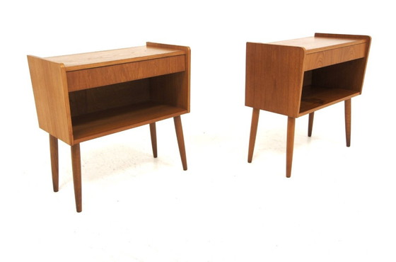 Set di due comodini in teak realizzati in Svezia negli anni '60. In ottime condizioni con minimi segni di usura. Fedeli alle condizioni vintage. 26435