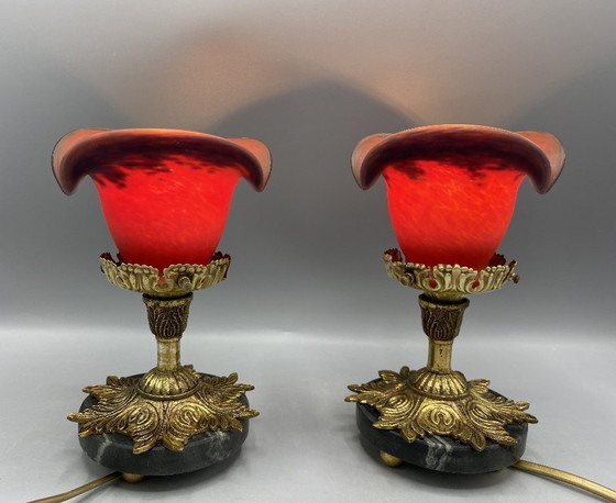 Set di 2 lampade da tavolo antiche in stile Art Nouveau - Vetro rosso