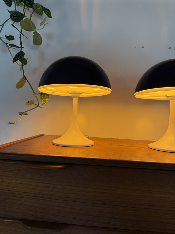 Set di due lampade da tavolo vintage a forma di fungo degli anni '80.