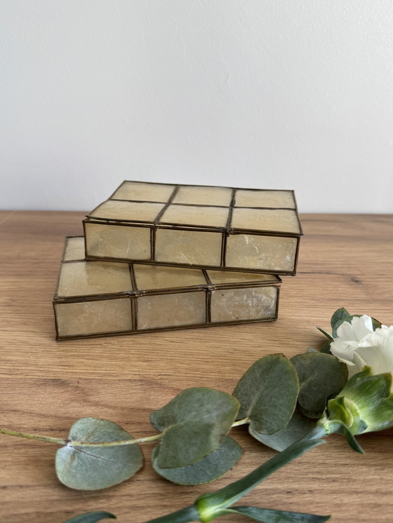 Deliziose scatoline decorative con coperchio in madreperla, eleganti e luminose.