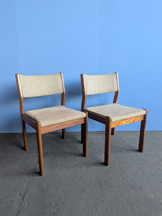 Set vintage di 2 sedie in teak, con una splendida struttura in legno dalle linee pulite e rivestimento originale.