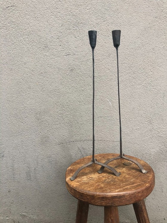 Bellissimo set di candelieri in ferro battuto realizzati a mano in uno stile robusto e raffinato attribuito a Hendrik van Keppel & Taylor Green.