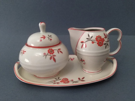 Otto Prutscher 'Metropolis' art-deco/bauhaus set 3 pezzi 1935--Pirkenhammer Austria 1935 ■ ■ ■incluso: 1 zuccheriera con coperchio 10x10cm 1 teiera 10x11cm 1 vassoio 23x13cm Marchio Pirkenhammer, decoro o numero di serie. Alcuni piccoli bordi sul vassoio, per il resto in perfette condizioni. bibliografia:Kat. Otto Prutscher, Vienna 1997--spedizione in UE - 35€ nel resto del mondo - 65€ SPEDIZIONE con posta prioritaria espressa e raccomandata In qualità di venditore privato, sarò responsabile per eventuali danni alla merce causati da un imballaggio difettoso. Non sarò responsabile per eventuali danni causati da colpa del corriere o per pacchi smarriti, ecc. In base alle leggi in vigore nell'Unione Europea, la responsabilità della consegna è dell'acquirente.