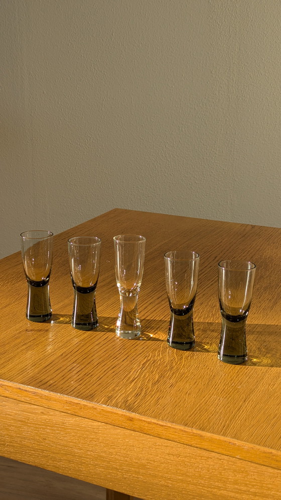 Set di 4 bicchieri vintage Holmegaard grigio fumo + 1 Ulla Uno Westerberg