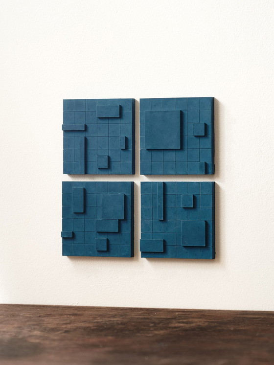 Set di quattro sculture da parete in cemento fatte a mano. Ispirate alle linee pulite e alle forme geometriche del movimento Bauhaus. La struttura a strati crea ombre che aggiungono profondità e consistenza. Realizzate in cemento di alta qualità e colorate con pigmenti naturali. Dettagli: • Dimensioni: 9,6 x 9,6 cm ciascuna • Materiale: Cemento • Stile: Brutalista, Bauhaus, minimalista • Adatta per il montaggio a parete o come oggetto decorativo indipendente Ogni scultura è realizzata a mano e presenta sottili variazioni di consistenza e dettagli.