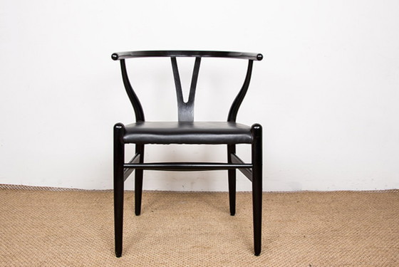 Sedie iconiche scandinave. Esemplari degli anni '70, completamente rilaccate. La sedia CH 24, o "Wishbone Chair", è la creazione più nota di Hans Wegner. La Wishbone Chair prende il nome dalla "Y" sullo schienale, a forma di sterno di pollo, o "osso felice". Wegner si ispirò per il suo design alle sedie Ming su cui venivano fotografati i mercanti cinesi. La Wishbone Chair di Wegner è sinonimo di solidità e comfort. È diventata il simbolo senza tempo del design scandinavo. Dalla sua creazione nel 1950, non ha mai smesso di essere prodotta dallo stesso produttore, Carl Hansen, nei suoi laboratori in Danimarca. Assemblaggio e finitura sono interamente realizzati a mano. Designer: Hans Wegner. Produttore: Carl Hansen & Son. Origine: Danimarca. Periodo: 1970. Condizioni: Ottime condizioni. Dimensioni: L: 55 cm – P: 51 cm – A: 76 cm – Altezza seduta: 45 cm. Materiale: struttura in legno laccato e sedili in pelle.