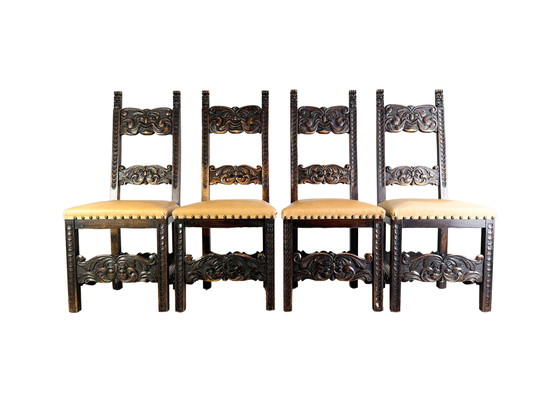 Set di 4 sedie neobarocche storicismo sedia antica in pelle epoca guglielmina