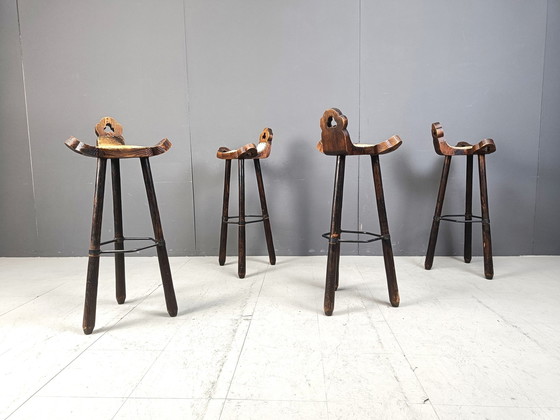 Bellissimi sgabelli da bar a treppiede di metà secolo, realizzati a mano, con schienali e sedute in pelle animale. Buone condizioni originali. Anni '60 - Spagna Dimensioni: Altezza: 95 cm Altezza seduta: 80 cm Larghezza: 45 cm Profondità: 38 cm Rif.: 25010802 *Il prezzo si riferisce al set *Le immagini fanno parte della descrizione