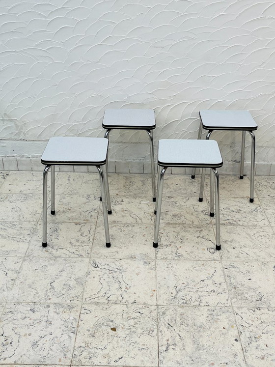 Set di 4 sgabelli vintage in Formica grigio cromato