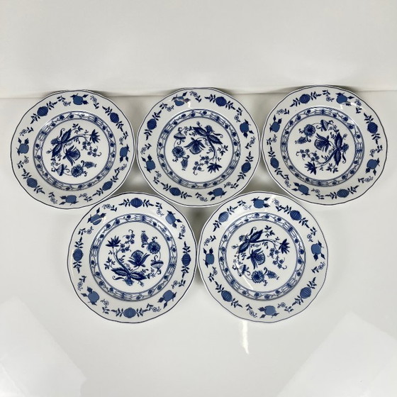 Set di 5 piatti da dessert con motivo a cipolla blu di Wellco, porcellana
