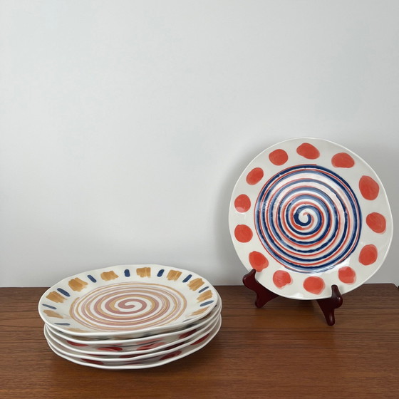 Set di 6 piatti piani moderni H&H Italy, modello Boho Dimensioni: Diametro: 26 cm Altezza: 3 cm Set di 4 piatti rossi e 2 gialli Prezzo nuovo: 100 € per un set di 6 Buone condizioni generali, articolo di seconda mano, vedi foto