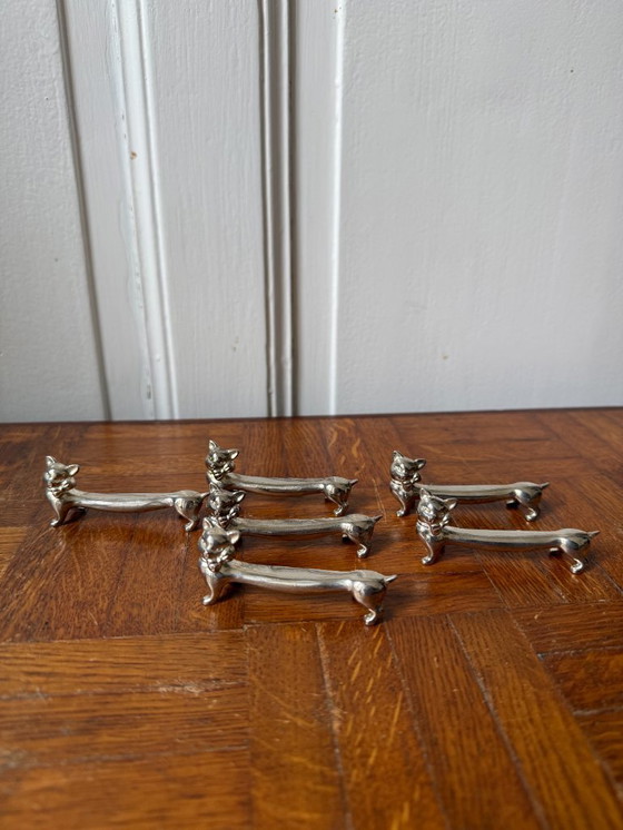 Set di 6 poggiacoltelli a forma di gatto in metallo argentato