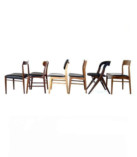 Set di 6 sedie da pranzo danesi, modelli assortiti, anni '60.
