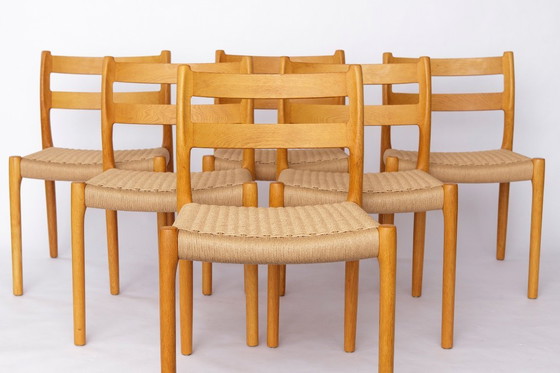 Set di 6 sedie da pranzo modello 84 di Niels Otto Møller in rovere | Stile moderno danese di metà secolo, anni '70, corda di