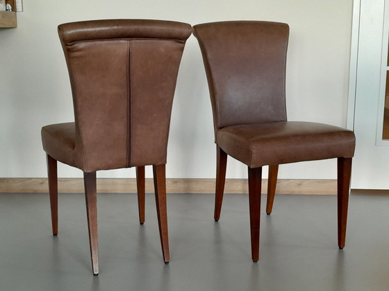 CondizioneBuonoColoriMarroneMaterialeLegno, PelleNumero di articoli6StileModernoPrimo proprietarioSìAltezza90 cmLarghezza44 cmProfondità42 cmAltezza del sedile50 cmSegni di utilizzoMacchie, Graffi