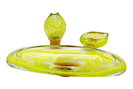 Unico. Un raro set di vetri artistici composto da un vaso, un posacenere e un piatto da portata disegnati da Ivo Rozsypal per Crystalex.