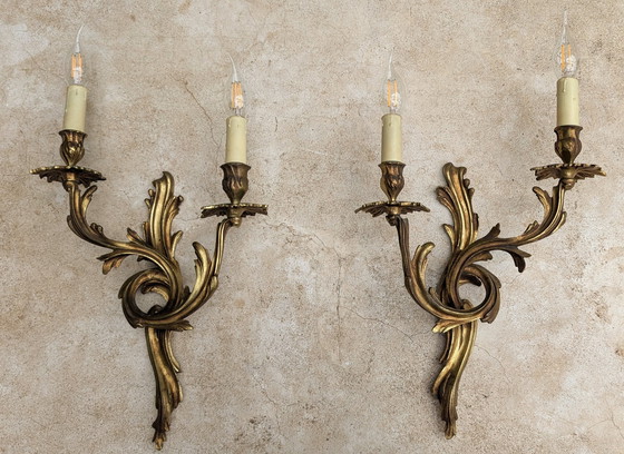 Questo splendido set di lampade da parete barocche in stile Art Nouveau dona un tocco di eleganza ai vostri interni. Con le loro forme aggraziate e la finitura dorata, queste lampade sono un'aggiunta perfetta a qualsiasi arredamento classico o vintage.