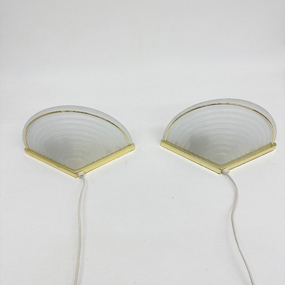 Set di lampade da parete vintage in vetro con supporto dorato, anni '70