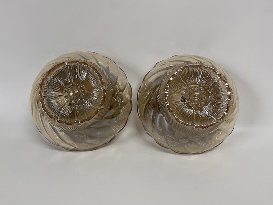 Set di lampade da parete/soffitto floreali di metà secolo, colore ambra/oro