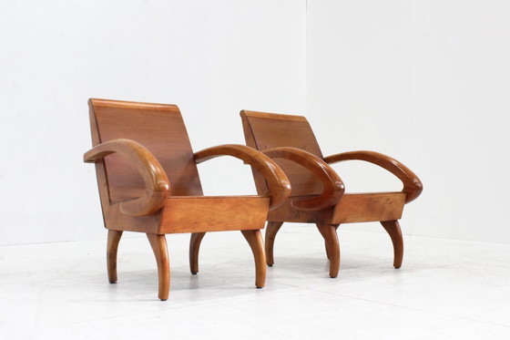 Set di poltrone in legno vintage della metà del secolo scorso