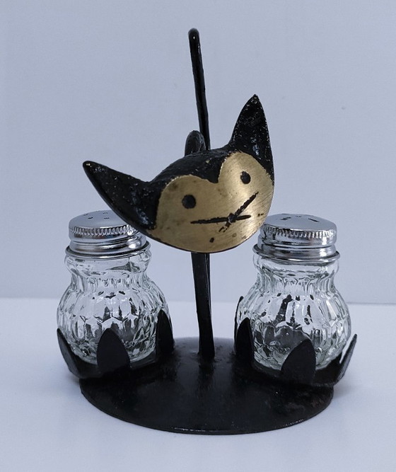Set di saliera e pepiera a forma di gatto degli anni '60