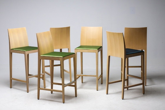 SET DI SEI SGABELLI DA BAR “ANNA” IN FAGGIO DI CRASSEVIG, ITALIA, ANNI '90