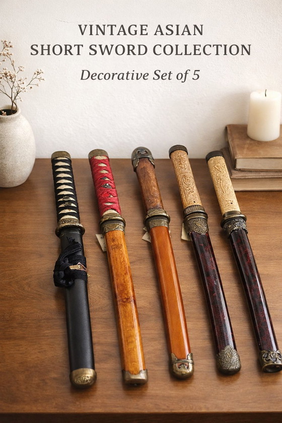 Set di 5 spade decorative in stile asiatico di Denix, ideali per decorazioni d'interni, collezionismo o esposizione.
