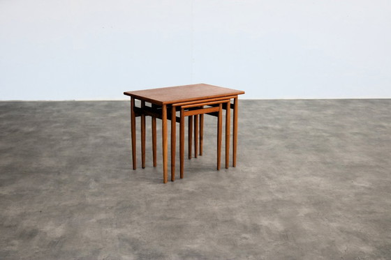 tavolini vintage | tavolini | teak | svedesi periodo | 1960 design | sconosciuto Svezia condizioni | buone | leggere tracce d'uso dimensioni | 48 x 61 x 40 (hxlxp) (tavolo più grande) dettagli | teak; set di 3; numero articolo | 2896