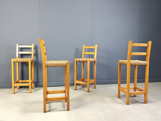 Sgabelli da bar vintage in rovere e corda di carta, anni '60