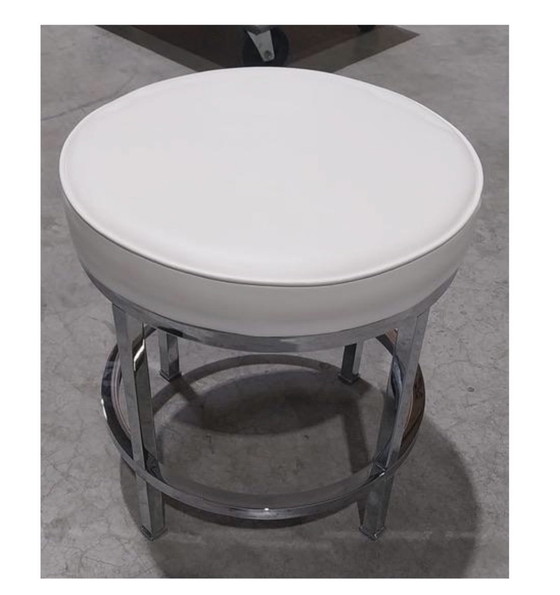 Sgabello rotondo imbottito con struttura in metallo. Seduta rotonda imbottita con rivestimento bianco. Struttura in metallo color argento con rinforzi ad anello perimetrali. Adatto come sgabello, sgabello da toeletta o come complemento per divano, poltrona o cabina armadio. Dimensioni: 238 x 50 x 142 cm.