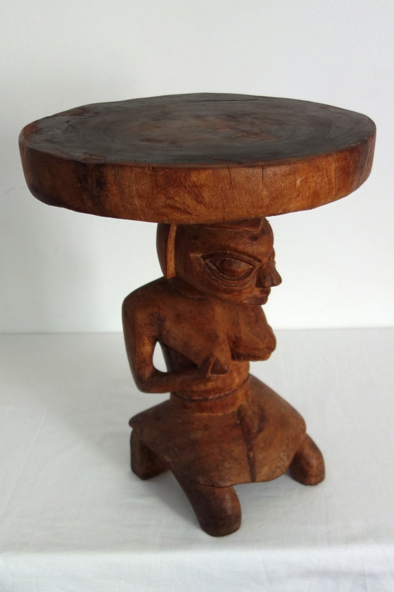 Sgabello da donna Luba intagliato in stile africano d'epoca