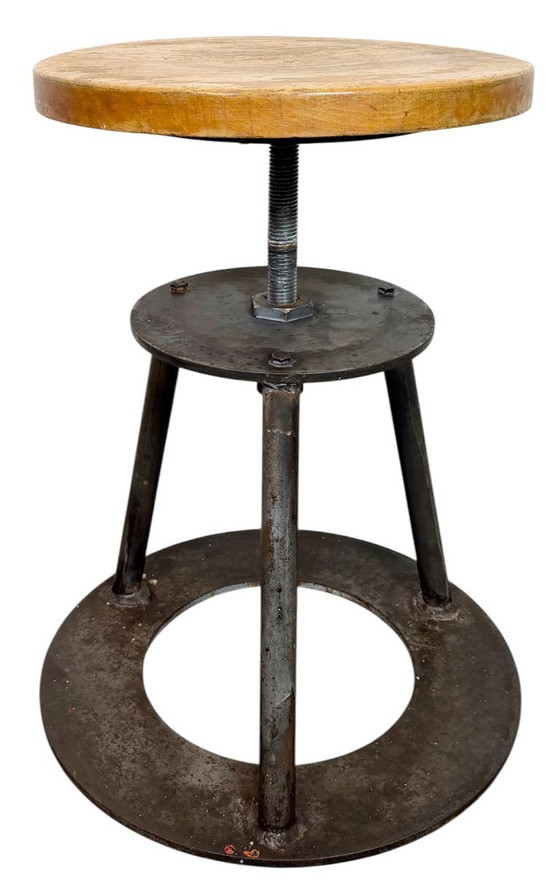 Sgabello da officina girevole industriale regolabile in altezza, prodotto nell'ex Cecoslovacchia negli anni '60.