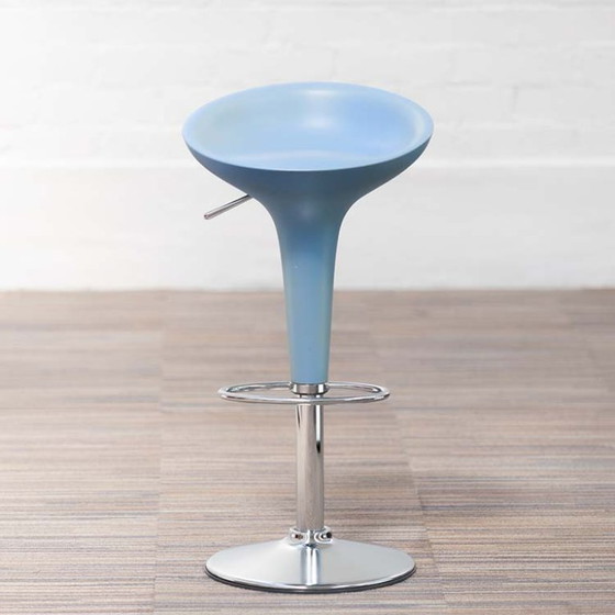 Lo sgabello da bar Bombo di Magis colpisce subito per il suo colore, che contrasta elegantemente con la base in acciaio cromato lucido. La scocca in plastica è liscia e funzionale, mentre la struttura in metallo riflette il lusso. Disegnato da Stefano Giovannoni, Bombo emana una semplicità elegante e senza tempo. L'equilibrio tra il metallo freddo e la plastica opaca offre un'estetica moderna con un tocco morbido. Grazie al meccanismo a molla a gas, è possibile regolare senza sforzo l'altezza della seduta per ottenere il massimo comfort in qualsiasi ambiente.