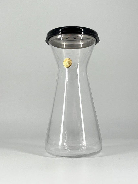 Un pezzo raro e autentico del design funzionalista tedesco. Questa è la versione alta dell'iconico shaker Wagenfeld, con il caratteristico coperchio nero (spesso utilizzato per il parmigiano o lo zucchero).