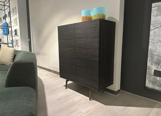 Mobile bar Sicuro, un modello alto dal design moderno ed elegante. Mobile bar Sicuro con portabottiglie. Dimensioni: 105 x 43 x 130 cm Colore Ebano opaco 03 Gambe Grigio Antracite