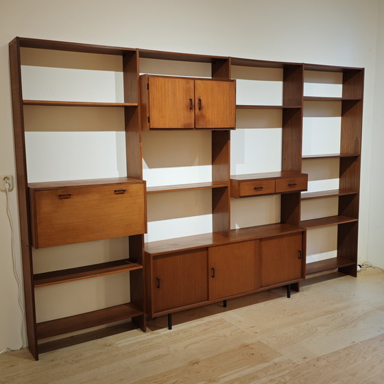 Questo fantastico mobile è in buone condizioni vintage. Come potete vedere dalle foto, presenta alcuni segni di usura su alcune parti. Il mobile è stato completamente oliato, quindi la maggior parte delle sue parti appare di nuovo come nuovo. Il mobile è modulare e può essere completamente smontato. Può anche essere riorganizzato in vari modi. Un mobile bellissimo e molto pratico!