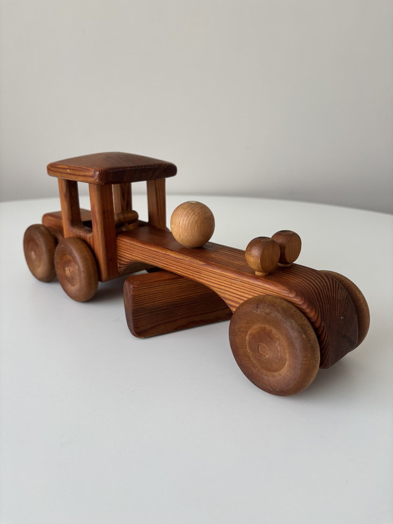 Scopri il fascino di questa "smerigliatrice stradale" vintage del marchio svedese Debresk, realizzata in legno massello di pino e faggio. Questo splendido pezzo emana semplicità e artigianalità, perfetto per gli amanti degli autentici modellini in legno.