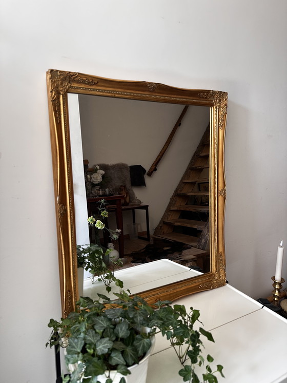 Splendido specchio barocco vintage con cornice dorata dettagliata. Gli eleganti ornamenti e la finitura raffinata conferiscono a questo specchio un aspetto elegante e lussuoso. Un vero e proprio colpo d'occhio per l'ingresso, il soggiorno o la camera da letto! Q872 Periodo: anni '70 Materiale: legno con finitura dorata Stile: barocco Colore: oro Dimensioni: altezza 67 cm, larghezza 58 cm, profondità 3 cm Condizioni: splendide condizioni vintage, lievi segni di usura commisurati all'età