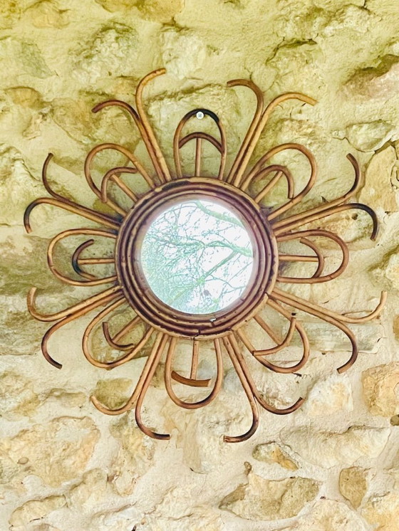 Specchio da parete in rattan e bambù, metà secolo, anni '60