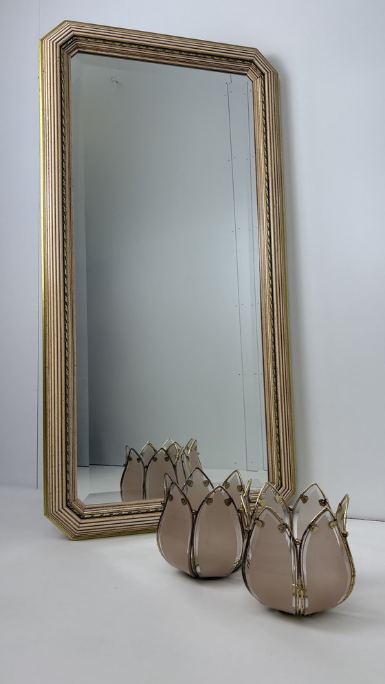 Specchio da parete vintage di design italiano sfaccettato oro