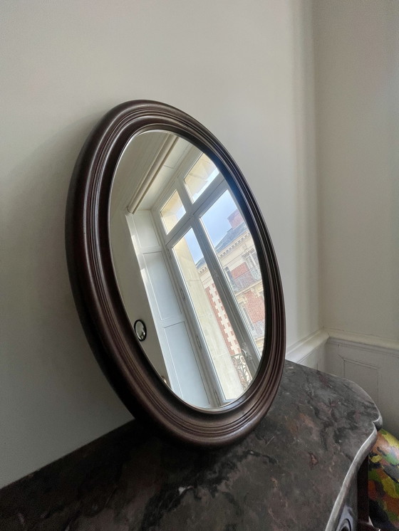 Questo specchio ovale vintage, prodotto in Francia negli anni '70, è un pezzo elegante che aggiungerà un tocco di fascino a qualsiasi interno. Con la sua cornice in legno marrone e il vetro di alta qualità, è perfetto per l'uso in soggiorno, camera da letto o corridoio. La sua classica forma ovale e lo stile vintage lo rendono la scelta ideale per chi apprezza il design retrò. Caratteristiche: - Specchio ovale vintage di Syla. - Periodo 1970. - Marchio Syla, riferimento 920. - Design registrato prodotto in Francia. - Materiale: cornice in plastica con effetto legno. - Dimensioni: 67/49 cm; specchio 56/38 cm. - Posizionabile orizzontalmente o verticalmente. - Alcune piccole macchie sullo specchio.