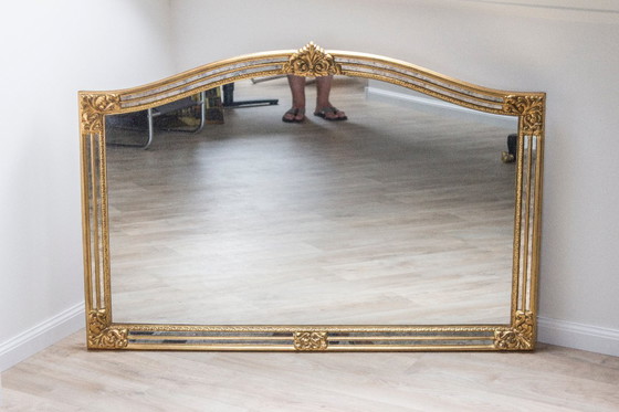 Lo specchio è realizzato in vetro cristallo di alta qualità e ha una dimensione generosa di 129 x 89 cm. Il grazioso design del bordo, con i bordi dello specchio finemente decorati, rende questo pezzo un vero e proprio richiamo visivo, ideale per essere collocato sopra una credenza, nell'ingresso o come accento di lusso nel soggiorno.