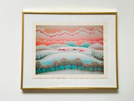 Riproduzione della famosa serie "Paesaggi naif" realizzata da Yvan Rabuzin negli anni '70. Questa stampa risale al 1982.