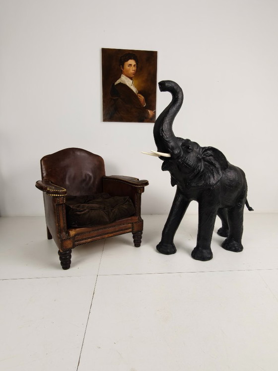 Bellissima e rara statua di elefante extra large, realizzata in pelle intorno al 1950. Realizzata con attenzione ai dettagli e in condizioni eccezionalmente buone per la sua età. La pelle mostra lievi segni di usura che conferiscono al pezzo un carattere e un'autenticità extra (vedi foto). 📌 Condizioni: Eccellenti condizioni vintage con lievi segni di usura che ne esaltano il fascino📌 Periodo: Circa 1950📌 Materiale: Pelle📌 Dimensioni: Altezza 130 cm | Larghezza 44 cm | Profondità 100 cm