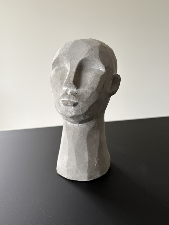 Testa stilizzata in cemento. Design elegante, moderno e spigoloso. Dimensioni: 14 cm di altezza, 9 cm di diametro.